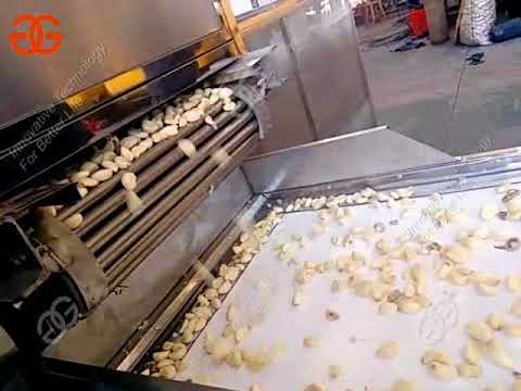 full automatic garlic peeling machine without cutted root| garlic peeler machine for sale. http://www.fruitok.com/product/commercial-peeling-machine/garlic-process-line.html . garlic separate machine,garlic peeler machine,garlic sorting machine,garlic packing machine and others.any problem you can contact me freely.
